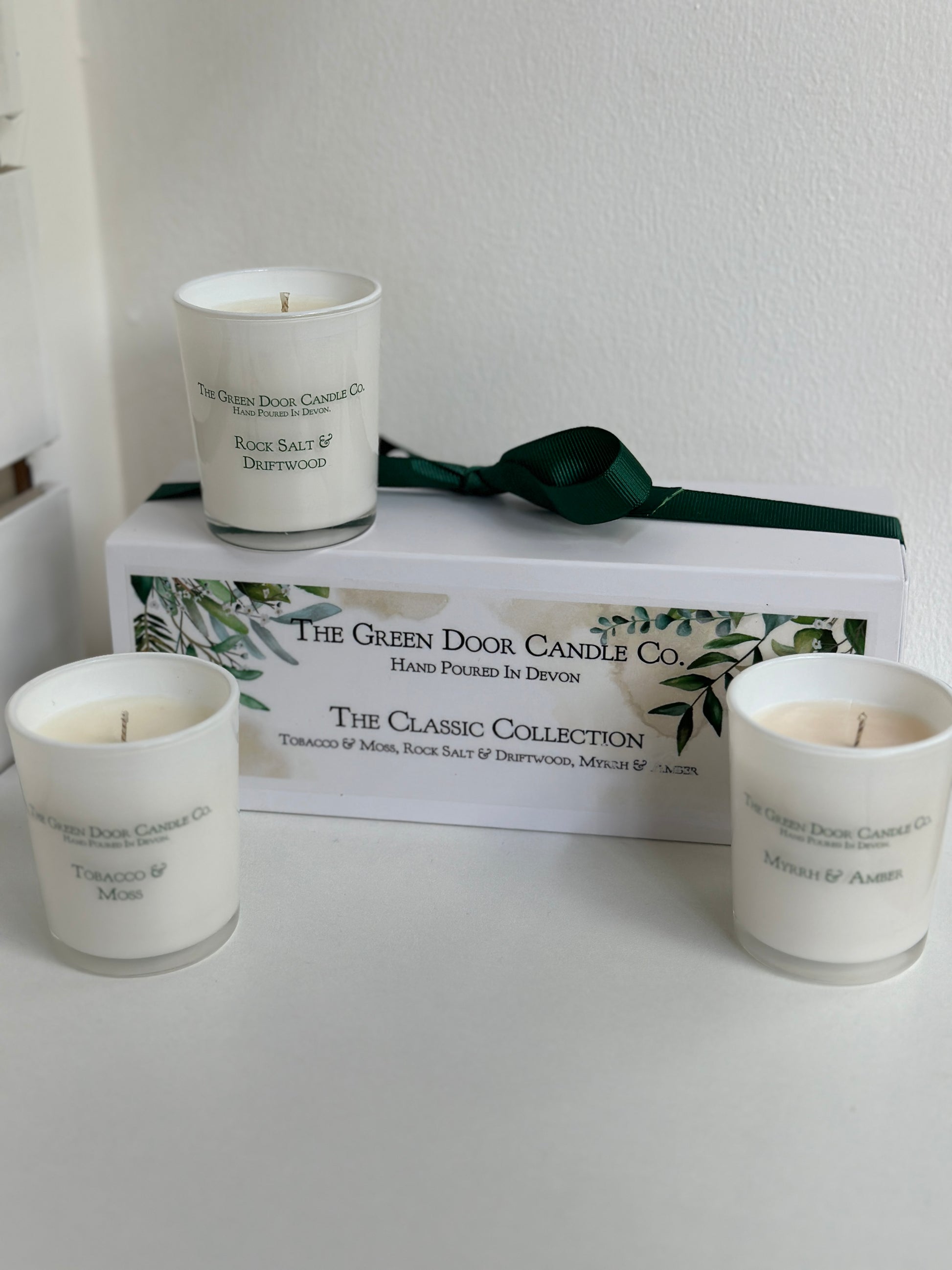 Our Classic Collection Candle Gift Set, consisting of three votive candles beautifully packaged, the perfect gift for a loved one or yourself.